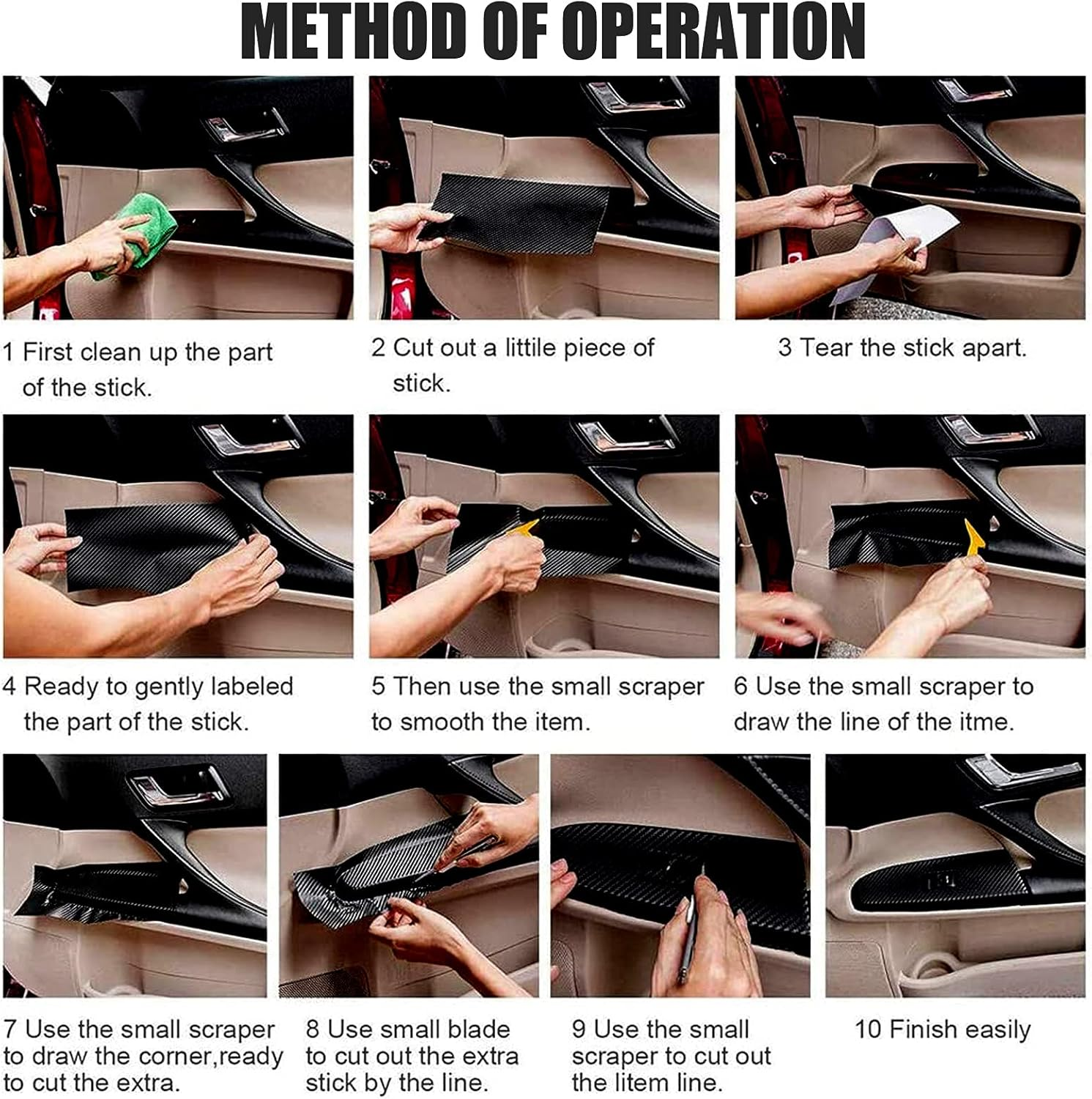 استيكر ألياف الكربون اللامع عالي الجودة مع لاصق دائم حساس للضغط، قابل للتمدد بالحرارة، ويقاوم الأشعة فوق البنفسجية والماء والأوساخ والدهون والملح والمواد الحمضية الخفيفة والزيوت. مثالي لكل الأسطح الداخلية والخارجية للسيارة مثل الصدامات، مقابض الأبواب، جنوط العجلات، لوحة القيادة، عجلة القيادة، المقابض الداخلية، صندوق القفازات، وكونسول السيارة.