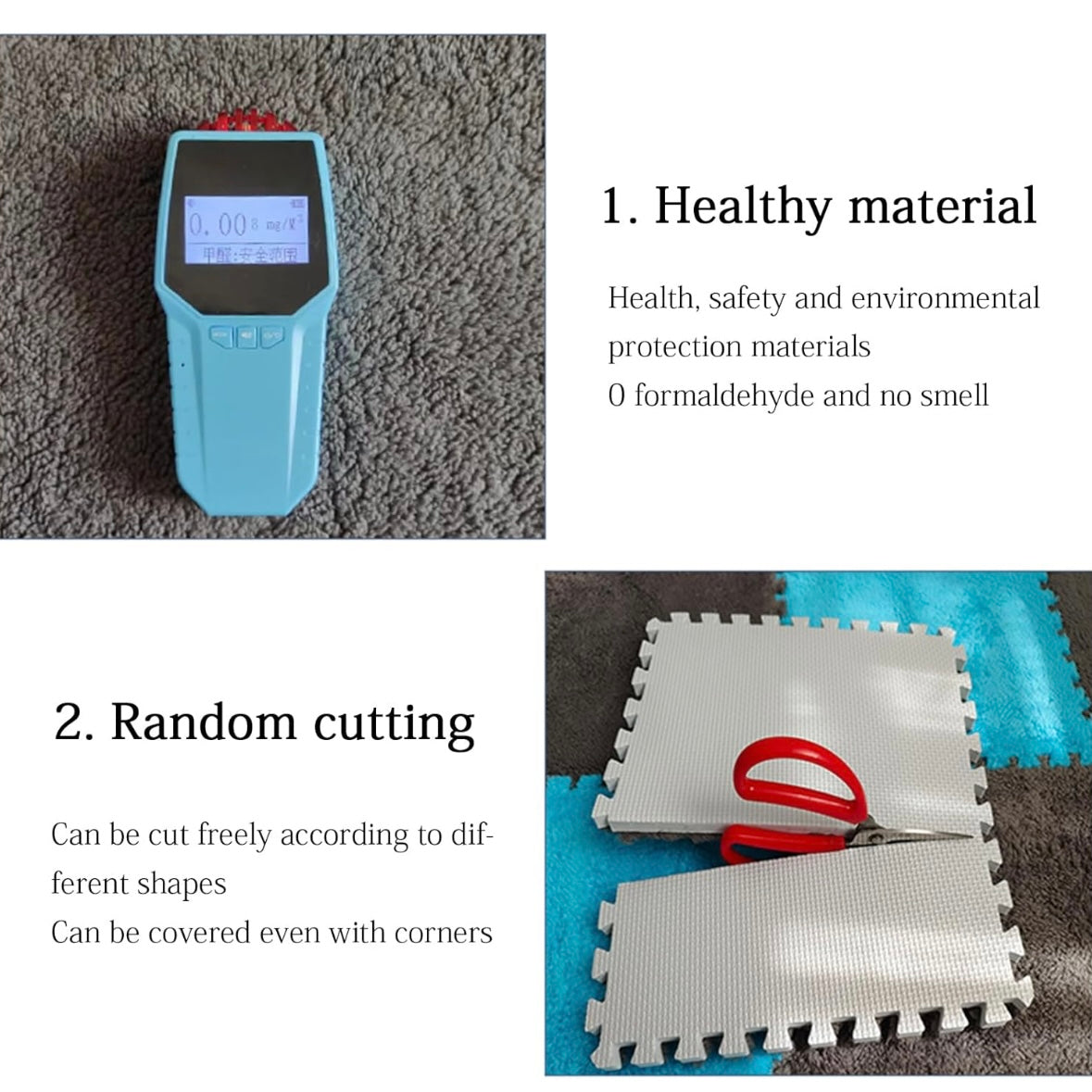 - Each mat measures 30x30cm / 12x12inch / 0.09m² / 1 square foot, Foam thickness 1cm (0.4inch). If you need other quantities or color matching, please contact us. You can assemble them as you like or actual needs without taking up much space.