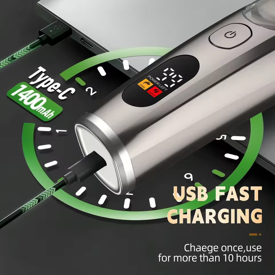 ماكينة حلاقة كهربائية متعددة الاستخدامات مزوّدة بتقنية الشفط المدمجة لتجميع الشعر المقصوص، بطارية قوية، مقاومة للماء، وتصميم آمن للبشرة. مثالية للحية، الجسم، والرأس، مع إمكانية تعديل الطول بسهولة.